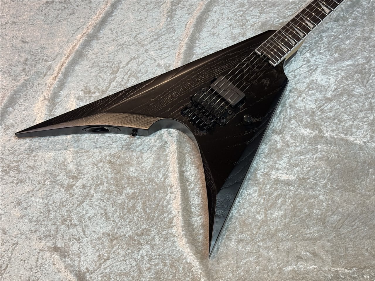 まず目を引くのは、その鋭角的なボディシェイプです。ステージでの存在感は抜群で、視覚的に強烈なインパクトを与えます。そして、特筆すべきは1ハムバッカー、1ボリュームという、極限までシンプルにまとめられたコントロール部。余計なものを一切排除し、演奏と音作りに集中したいというギタリストのストイックな志向に応える設計です。